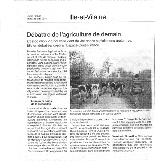 Avec ses 28 participants et l’appui des groupes de Saint Brieuc et Rennes, ce voyage fut un moment fort pour tous, qu’ils soient proches ou non de ce monde qui se sent mal aimé et pourtant indispensable. En voulant rencontrer « les agriculteurs face aux injonctions contradictoires de la société », nous avons rencontré, quel que soit leur mode de production, des hommes et des femmes debout, passionnés, responsables. Nous n’avons pas fait le tour de tous les problèmes, et découvert que rien n’est simple au vu des enjeux économiques, sociaux, environnementaux…. Le prochain numéro de Citoyens en rendra compte largement.